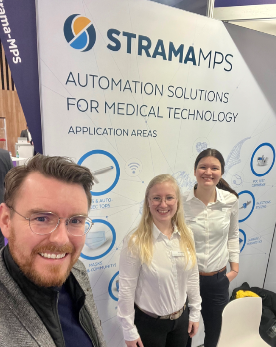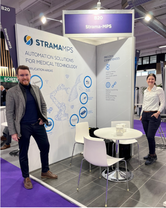 展會第二天,董事總經理Martin Ebner先生來到現場提供支持,他們一起向觀眾展示了應用于醫療領域的自動化解決方案以及創新性裝配平臺(ProMocurve)或者更準配地說是數字孿生產品。